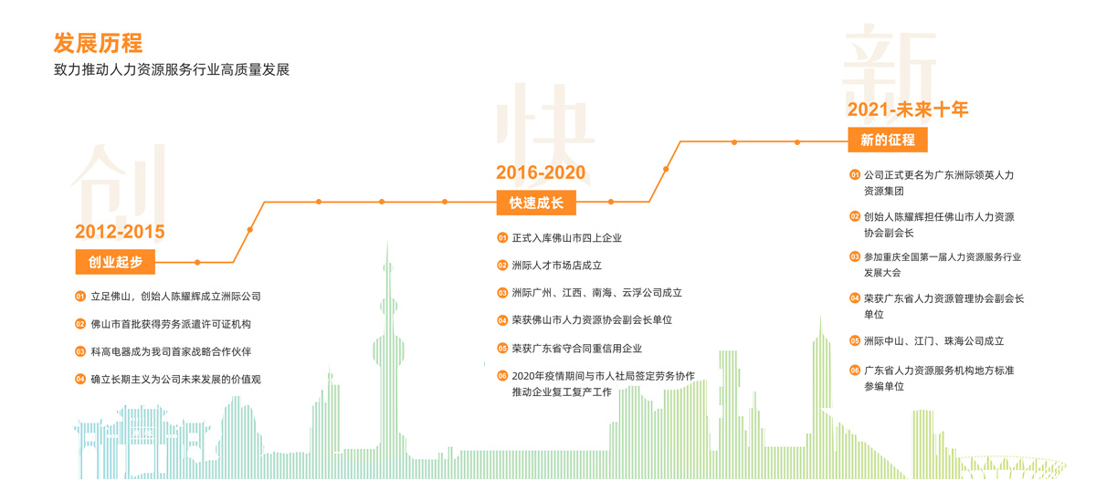 洲際領英集團,成立于2012年,注冊資金3000萬,總部座落于廣東佛山人力資源產業(yè)園,是一家致力于人力資源服務的集團公司。集團憑借創(chuàng)新務實的人力資源服務為用戶提供勞務派遣、勞務外包、RPO招聘、人事代理、薪酬代發(fā)、政企公共就業(yè)服務等產品服務。公司擔任廣東省人力資源管理協(xié)會副會長單位,佛山市人力資源協(xié)會副會長單位,同時先后在佛山、廣州、江西、云浮、中山、江門、珠海等地設立了分支機構。十二年以來與國內1000多家知名企業(yè)達成業(yè)務合作,累計為社會解決就業(yè)約100萬人次。其中2020年期間積極參加廣東省人力資源行業(yè)公益聯(lián)盟活動,為海天味業(yè)、一汽大眾、國星光電、健力寶集團、廣州酒家、國藥集團、供水公司、中國電網(wǎng)、華鷺控制器等知名客戶提供有效的人力資源解決方案,2023年10月被廣東省人社廳評選進入廣東省龍頭人力資源服務企業(yè)培育目錄